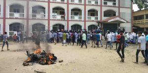 বিক্ষোভ চলাকালে শিক্ষার্থীরা প্রধান শিক্ষক আব্দুল ওয়াহেদের মোটরসাইকেলে আগুন ধরিয়ে দেয়।